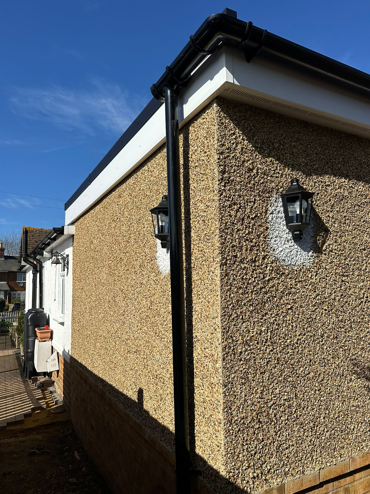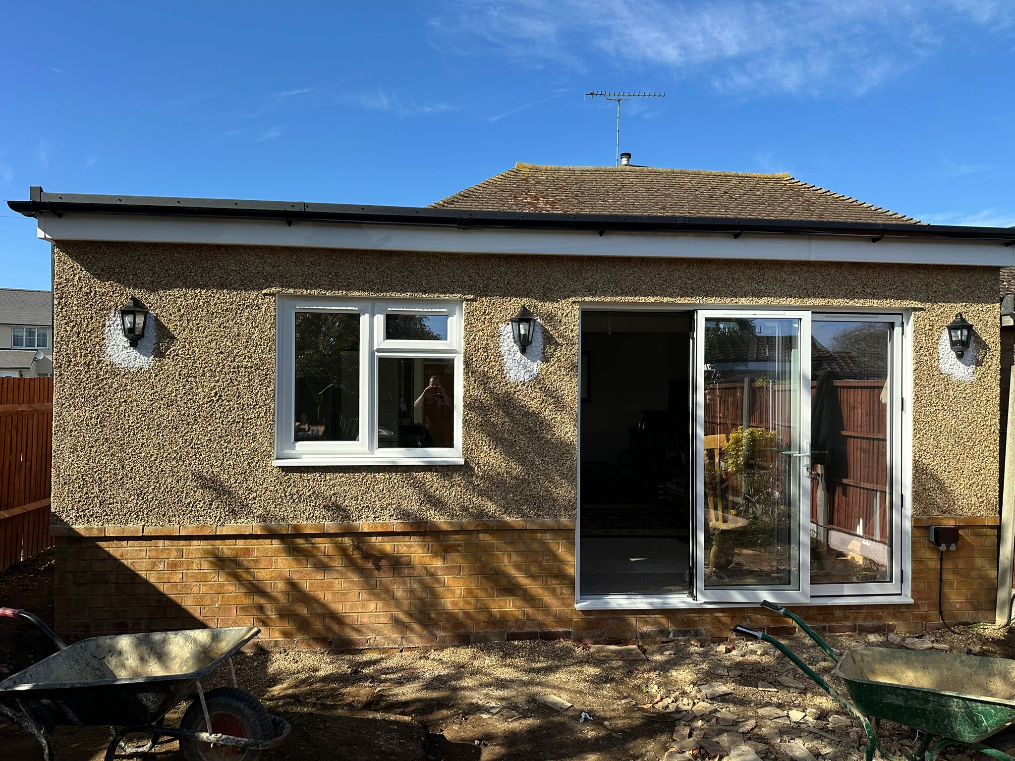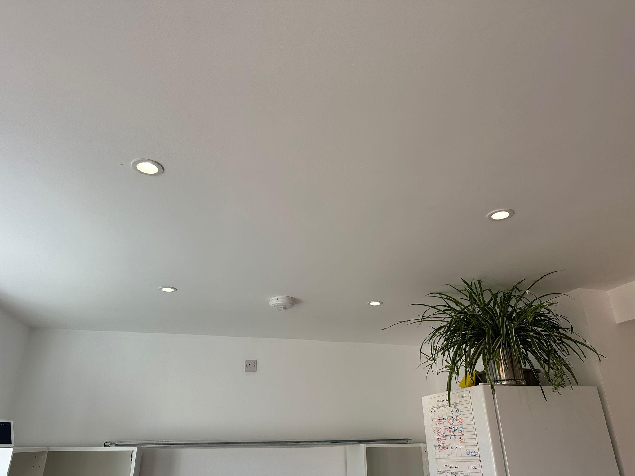 Installation of new indoor ceiling lighting and power outlets as part of a home extension in Flitwick. The work included neatly routed cabling, fitting of modern light fixtures, and installation of socket outlets to provide safe, reliable, and well-distributed power throughout the new space.